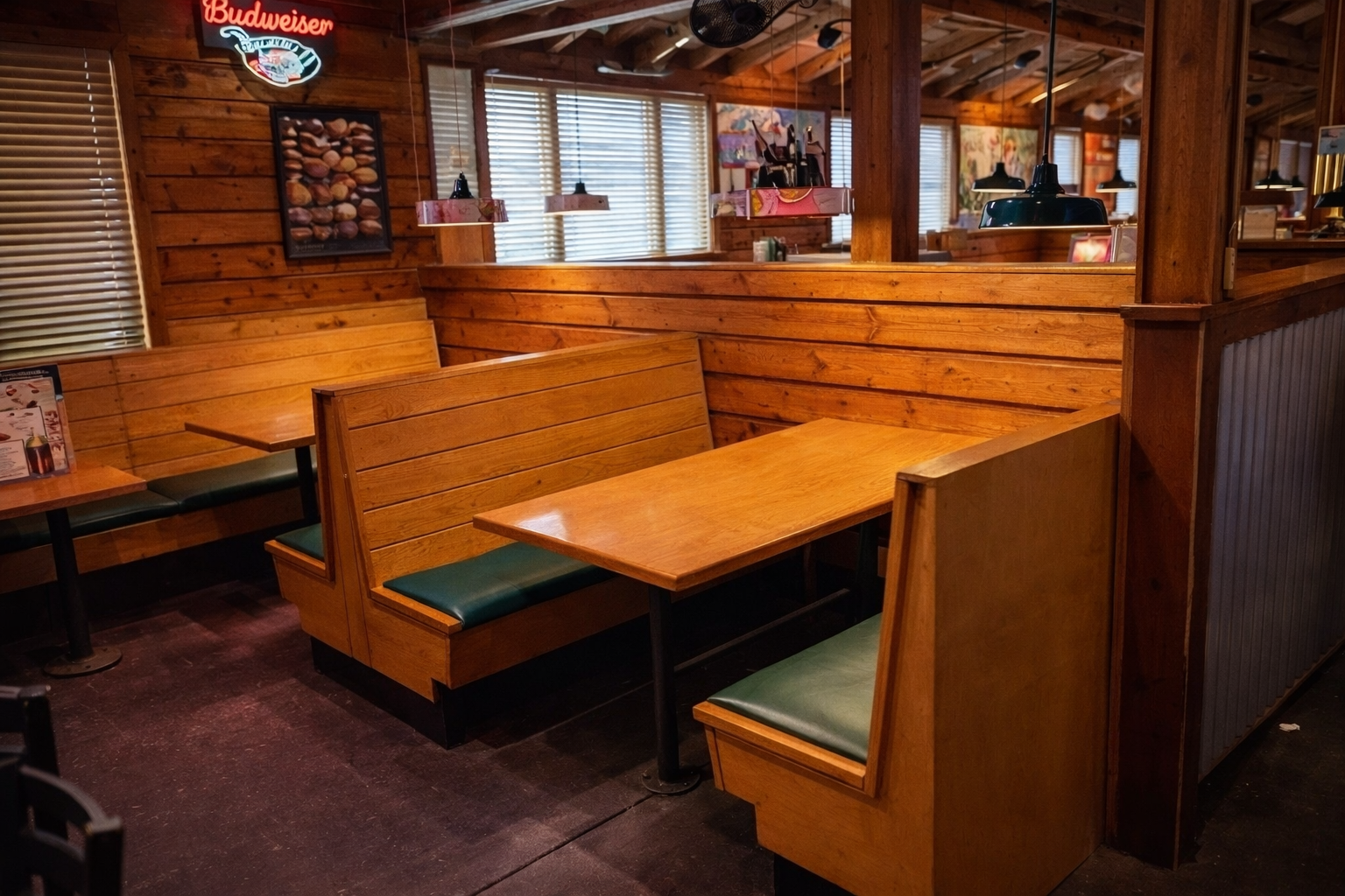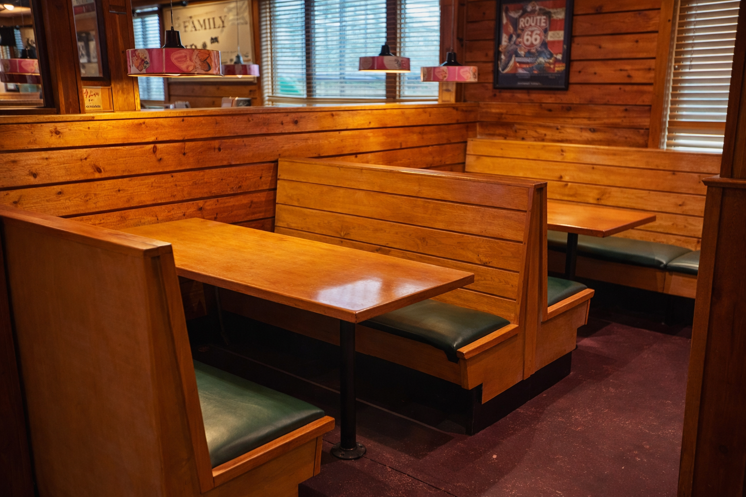 The former Lover’s Lane dining section was transformed into a more family-oriented layout, creating a welcoming, open environment better suited for high-volume service. Booths and tables were reworked to introduce additional two-top and four-top seating, providing greater versatility for daily operations. The surrounding dining areas were upgraded with larger six-top tables and booths to better accommodate group dining and peak-hour traffic.