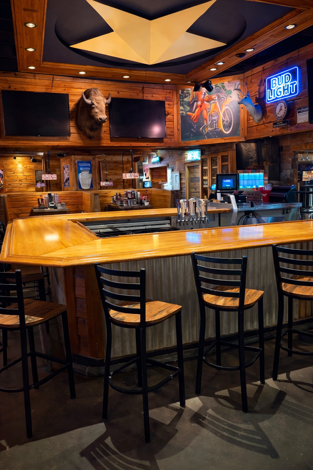 The bar area also received a significant refresh. A brand-new bar top was installed, enhancing both durability and visual appeal while maintaining the warm wood tones synonymous with the Texas Roadhouse brand. The bar foot rail was reworked to ensure long-term performance and guest comfort.